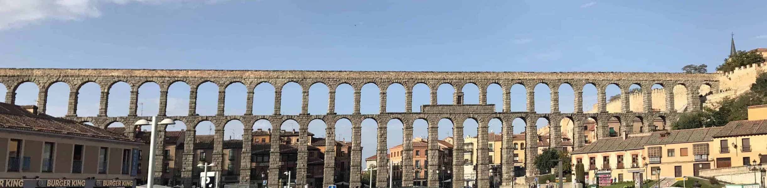 Segovia es internacionalmente conocida por su famoso Acueducto romano que atraviesa el corazón de la ciudad y es su estampa más típica. Realmente es una obra impresionante, más aún sabiendo que ya tiene una edad de dos mil años y que por supuesto se construyó a base de piedra y mano de obra, sin hormigón, ni grúas mecánica, ni herramientas eléctricas. Y sin embargo, aún se mantiene en pie.